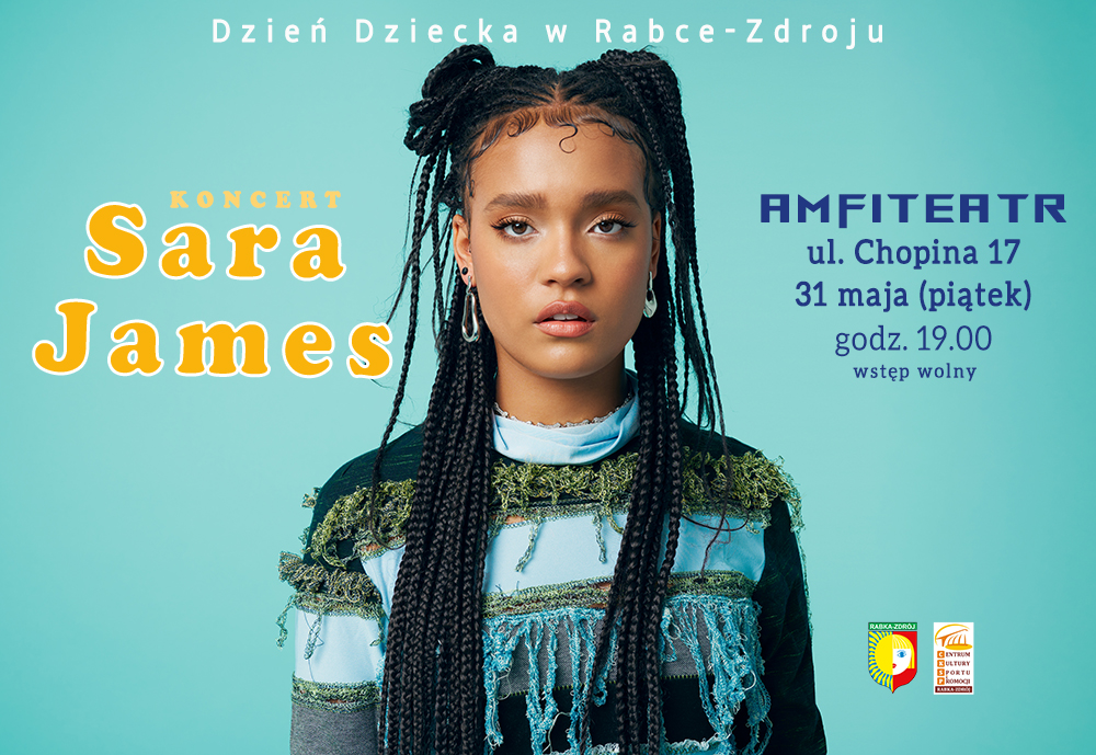 Coroczną tradycją jest, że Rabka-Zdrój - Miasto Dzieci Świata - zaprasza na Dzień Dziecka wyjątkową gwiazdę. Tak będzie i w tym roku. 31 maja (piątek) do Rabki-Zdroju przyjedzie popularna wokalistka Sara James - zwyciężczyni czwartej edycji programu The Voice Kids (2021). Reprezentantka Polski w 19. Konkursie Piosenki Eurowizji dla Dzieci(2021), w którym zajęła drugie miejsce. Finalistka 17. edycji talent show Americas Got Talent (2022). Sara wystąpi z koncertem o godzinie 19 w rabczańskim amfiteatrze. Widzowie usłyszą jej największe przeboje.