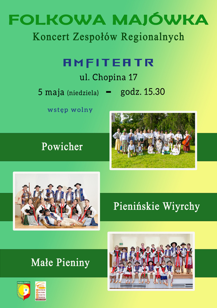 5 maja (niedziela) w rabczańskim Amfiteatrze przy ul. Chopina 17 odbędzie się koncert zespołów regionalnych z Rdzawki i Krościenka.