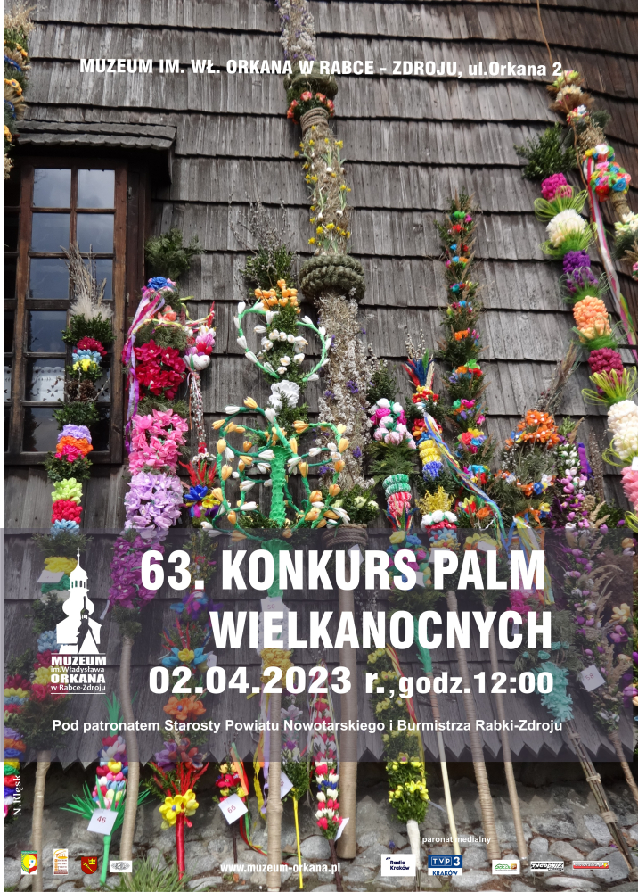 Muzeum im. Władysława Orkana zaprasza do udziału w corocznym konkursie palm wielkanocnych. Konkurs ten jest jednym z najstarszych konkursów w Polsce i w tym roku wraca do swojej tradycyjnej formuły. Corocznie w konkursie bierze udział około 100 uczestników. Ta barwna impreza plenerowa przyciąga liczne grono miłośników kultury tradycyjnej i ludowej. Zapraszamy serdecznie, tegoroczna edycja odbędzie się 02 kwietnia (niedziela) o godz. 12 00 w Kościółku muzeum.